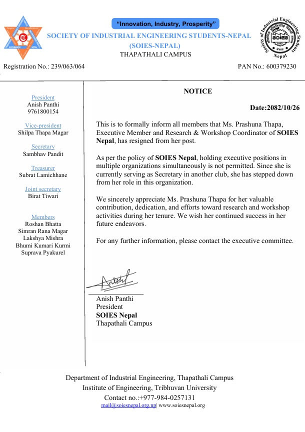 Official notices and announcements from SOIES Nepal